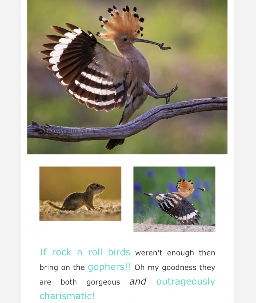 BEAUTIFUL photographic stills to draw from of Gophers & Hoopoes, taken by the amazing Thomas Hinsche.